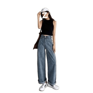 新塘牛仔裤牛仔阔腿裤女高腰坠感直筒拖地垂感显瘦泫雅直筒裤代发