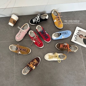 真皮复古德训鞋女2025新款圆头系带百搭休闲运动鞋增高星星小脏鞋