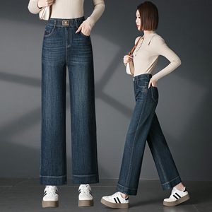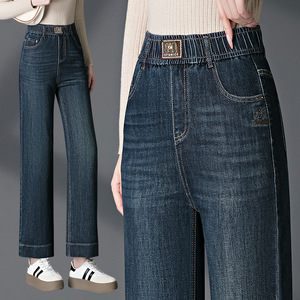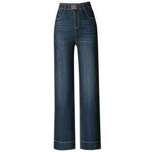 2090阔腿牛仔女长裤新款春秋季爆款复古松紧高腰小个子气质休闲裤