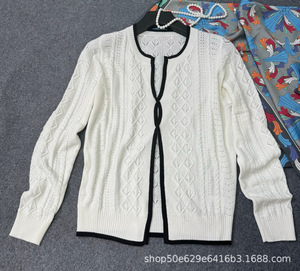 现货法式小众2025早秋简约镂空纽结V领针织衫软糯薄开衫