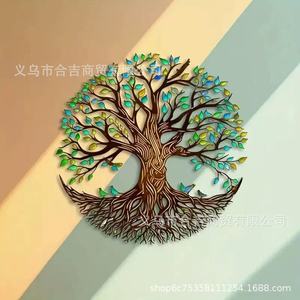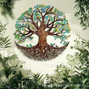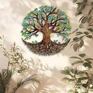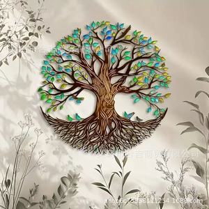 跨境铁艺生命树壁挂金属墙面装饰壁挂庭院彩色UV生命树壁饰墙饰