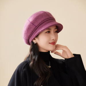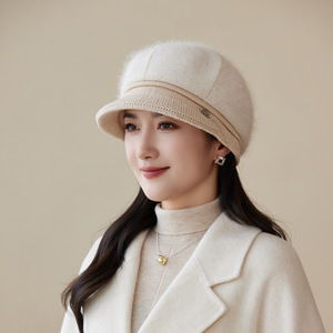 秋冬季新款中老年人兔毛保暖针织鸭舌帽户外骑行防寒妈妈帽子批发