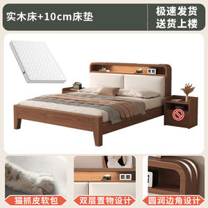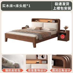 实木床现代简约1.8米双人床家用卧室储物床1.5出租房1.2m单人床架