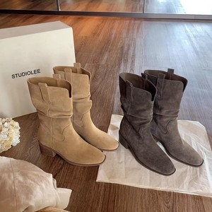 现货秒发~葡萄妈同款 增高8cm~韩系圆头V口粗跟显瘦堆堆短靴女