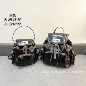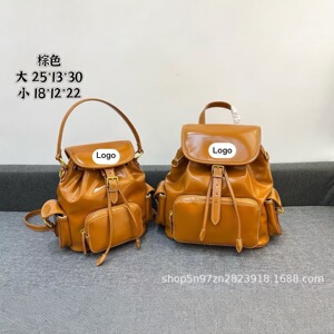 2025春夏Miu缪双肩包张元英同款焦糖色纯色抽绳水百搭透气设计