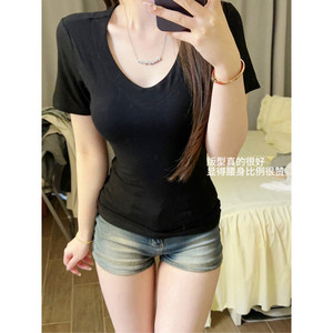 收腰显瘦V领正肩短袖面料柔软舒服百搭经典基础打底内搭修身