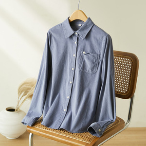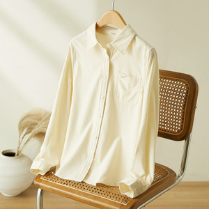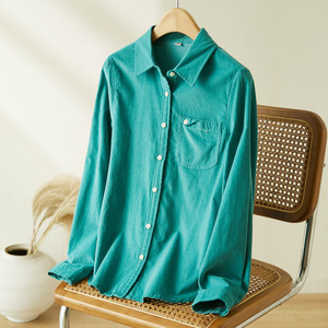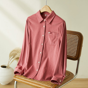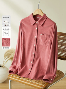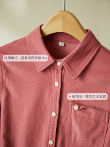 别样 磨毛长袖衬衫女装春秋新款通勤风翻领口袋折角多色休闲衬衣
