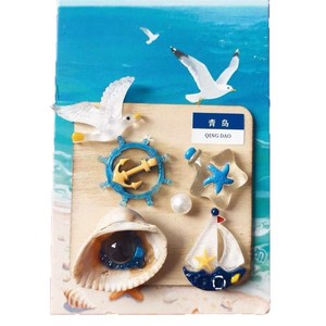 沿海城市旅游青岛大连威海平潭文创贝壳帆船海鸥冰箱贴纪念品磁贴