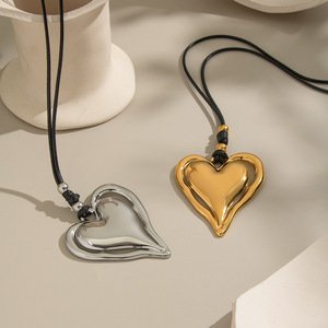 夏凌时尚黑绳金属爱心吊坠项链不锈钢坠子女士简约百搭项饰批发