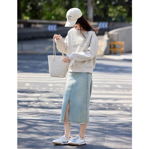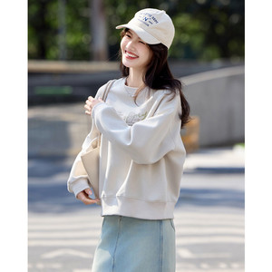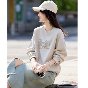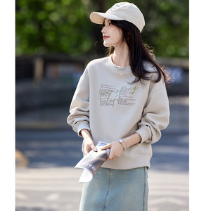 立体字母印花卫衣2025早秋简约时尚风小个子宽松休闲卫衣女