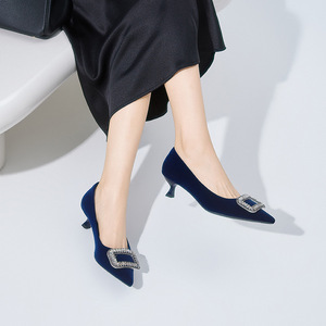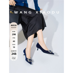 【王小毒】期待●绒面高跟鞋女气质高级不累脚亮钻方扣浅口单鞋