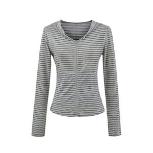 莱赛尔条纹拉链连帽上衣2025夏季新款薄款防晒修身开衫小外套女