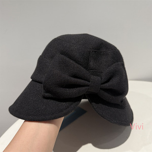 秋季时尚新款后开口蝴蝶结渔夫帽女短檐百搭遮阳盆帽气质优雅布帽