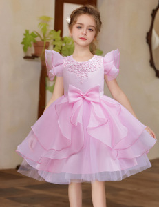 圣诞款跨境儿童礼服蓬蓬女童网纱公主裙中大童演出礼服裙现货368
