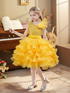 新款女童宝宝周岁连衣裙中大童斜肩蓬蓬蛋糕短款儿童演出礼服390