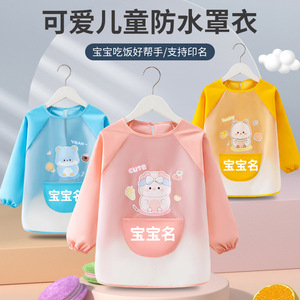 儿童画画罩衣加长款防水防脏幼儿园宝宝绘画围裙反穿衣吃饭围兜