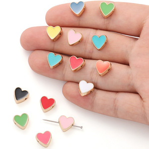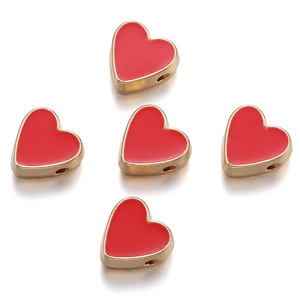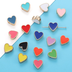 DIY合金饰品配件双面滴油爱心孔珠 手链项链隔珠串珠W461