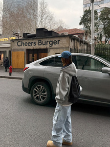 即墨卫衣外套女2025新款早秋女装灰色撞色藏蓝色上衣连帽拉链开衫
