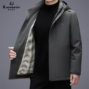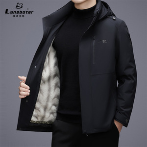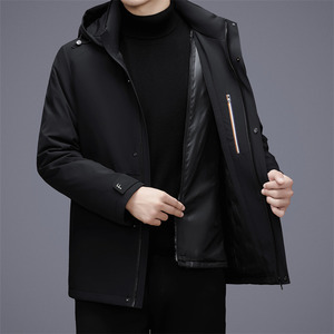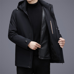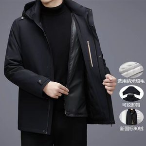 脱卸纳米貂毛内胆连帽羽绒服男士冬季新款中长中年羽绒服保暖外套
