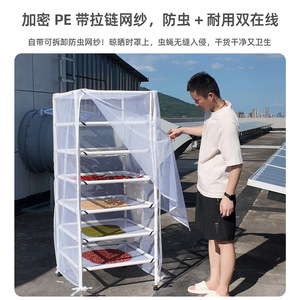 收纳晒干架防虫防蝇晾晒架晒茶叶药草辣椒榨菜网布可移动多层防尘
