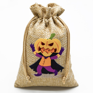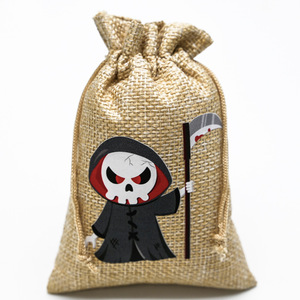 万圣节卡通款麻布束口袋抽绳小布袋外贸电商批发支持logo自定义