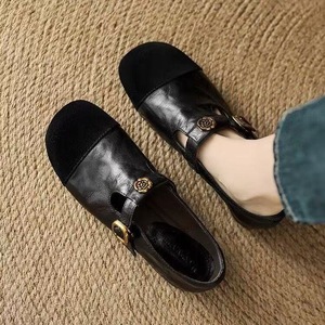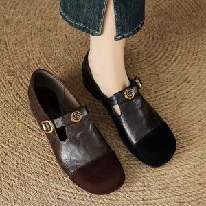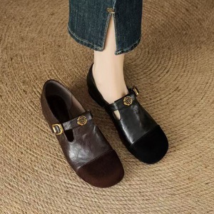 复古T字软底皮鞋2025秋季新款山茶花玛丽珍鞋女百搭一脚蹬豆豆鞋