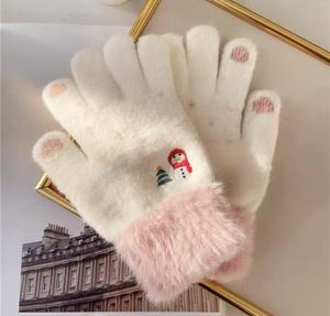 公主风保暖手套雪人刺绣针织可爱防寒保暖毛绒防风骑行秋冬季手套
