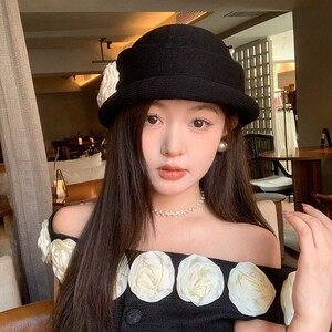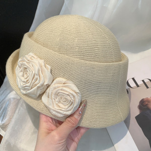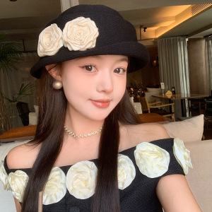 法式优雅花朵千金礼帽女夏季薄款透气大头围显脸小赫本风贝雷帽子