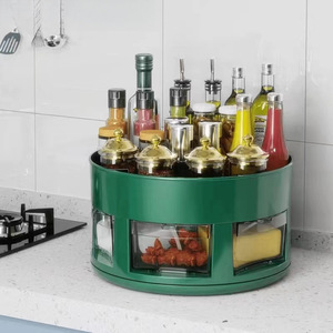 厨房置物架台面可旋转多层便捷免安装多功能收纳盒双层旋转调料架