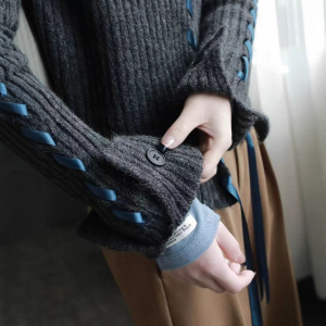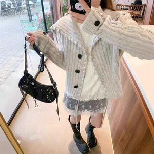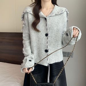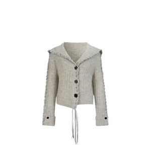 法式小香风秋冬新款外套 串绳设计时尚海军领 翻袖针织毛衣女开衫