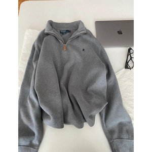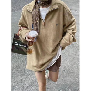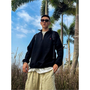 半拉链宽松美式卫衣男polo情侣卫衣女复古长袖翻领