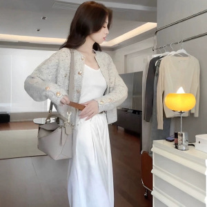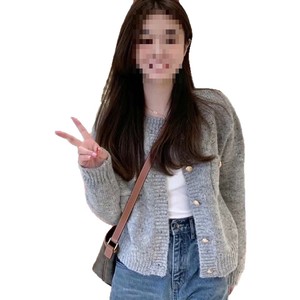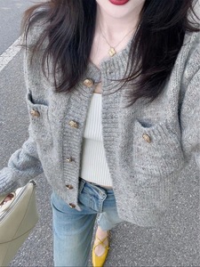 法式复古小香风灰色针织开衫毛衣女软糯高级感慵懒风外套上衣秋冬
