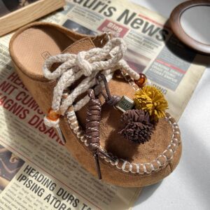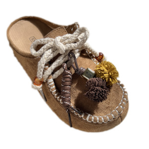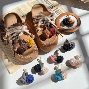 新款MIU系美拉德双色流苏花球鞋挂鞋扣德训鞋穆勒鞋DIY鞋上装饰扣