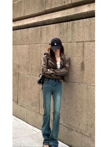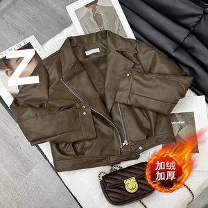 欧货翻领短款pu皮外套女加绒春秋新款感机车炸街小个子皮夹克严选