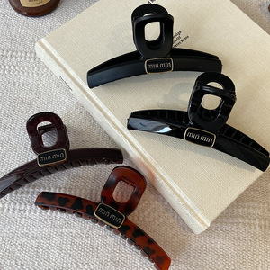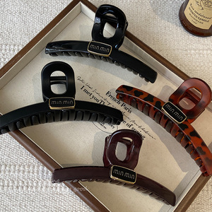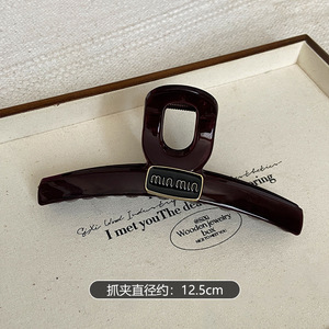 巧克力色金标字母抓夹女高级感大号鲨鱼夹后脑勺气质盘发发夹头饰