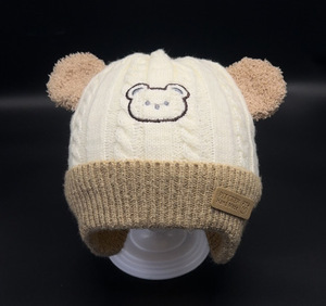 儿童可爱超萌小熊帽子冬季户外防风保暖帽卡通护耳套头儿童针织帽