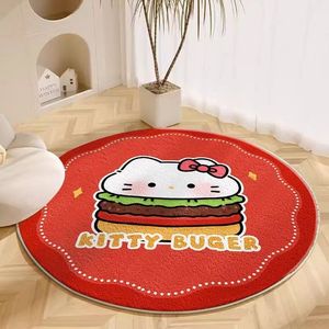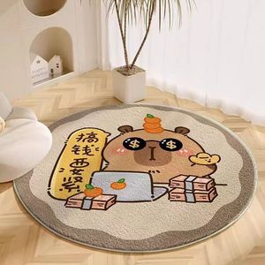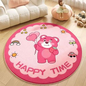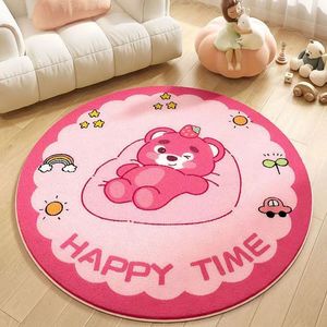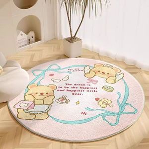 ins卡通甜品熊少女圆形仿羊绒地毯客厅毯卧室床边毯书房儿童地垫