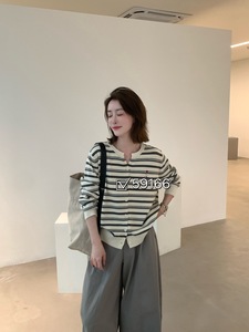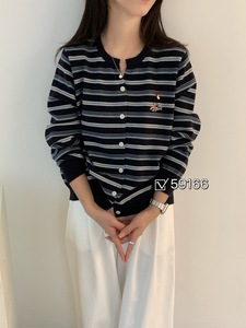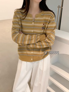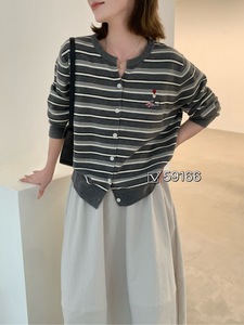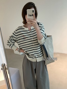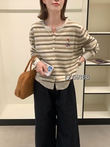 2025秋季新款韩版宽松刺绣条纹针织开衫 百搭休闲保暖毛衣外套女