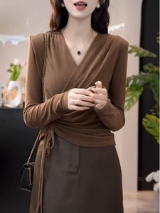 咖色【秋装女款2024年新款/初秋早秋大码穿搭/独特超好看/今年流行漂亮/爆款/欧货小衫/短款/时尚