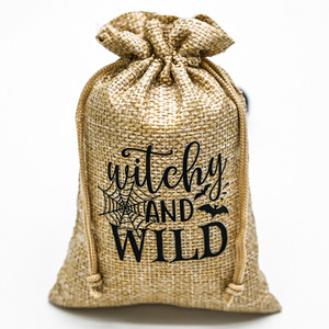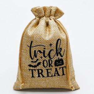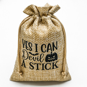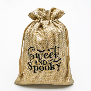 万圣节新版字体质感麻布抽绳束口袋 亚马逊爆款电商热销
