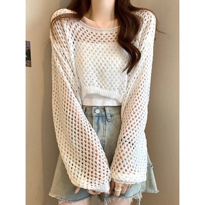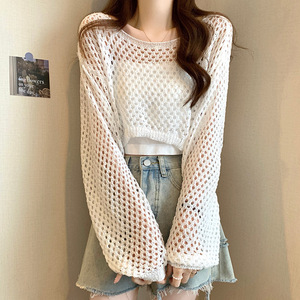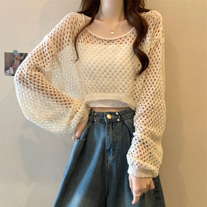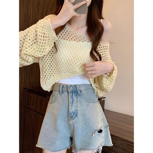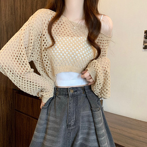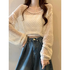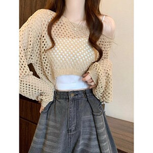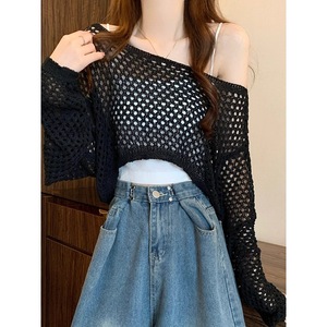 镂空短款防晒罩衫女2025夏季薄款外穿小衫miu露肩针织衫短款上衣