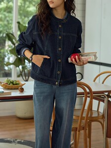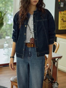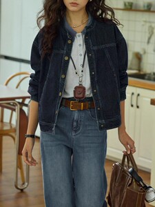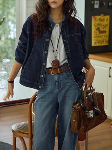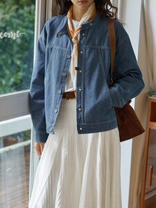 solighter法式复古小立领牛仔外套女秋季夹克外套