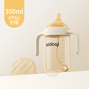 宽口径PPSU奶瓶大宝宝吸管奶瓶学饮鸭嘴杯喝奶喝水杯防胀气奶瓶