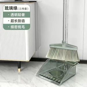 轻奢家用透明扫把簸箕扫帚套装加厚加大湿两用不锈钢防风组合笤帚