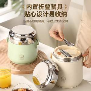 304不锈钢真空保温提锅学生上班族大容量饭桶便携带筷勺分格饭盒