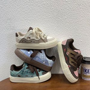 2025秋季新款透气拼色滑板鞋ins学生韩版小白鞋女潮流面包鞋6158
