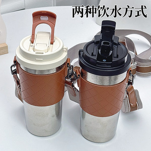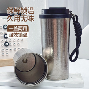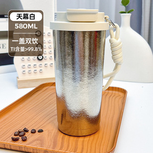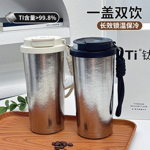 纯钛杯冰美式咖啡杯吸管杯女生高颜值保冷保温杯便携双饮学生水杯