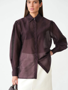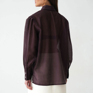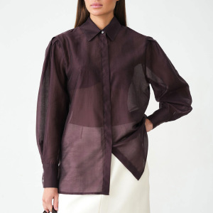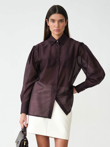 秋冬新款肩部打褶紫色长袖天丝衬衣女设计感气质时尚2025跨境通勤