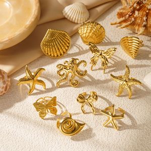 时尚轻奢度假风海星不锈钢戒指星星光面开口指环女流行不掉色饰品