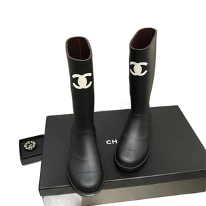 时尚小香风不过膝长靴女中长筒骑士靴厚底黑色高筒中古风橡胶雨靴